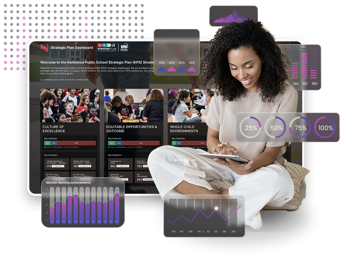 We help school districts turn their strategic plans into visible, measurable progress with strategic plan dashboard solutions showing what drives success, where to focus, and how to keep moving forward.