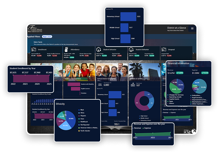 Integrate data from diverse district systems into one place. Track key performance indicators with a high-level overview tailored to your needs.