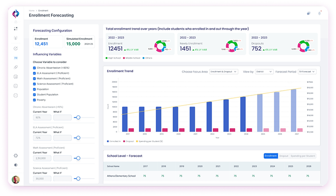 Yes. Built-in forecasting tools use historical and current data to predict future enrollment trends, helping districts plan staffing and resource allocation with confidence.