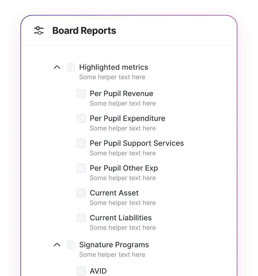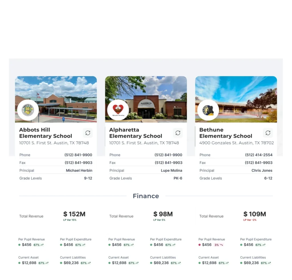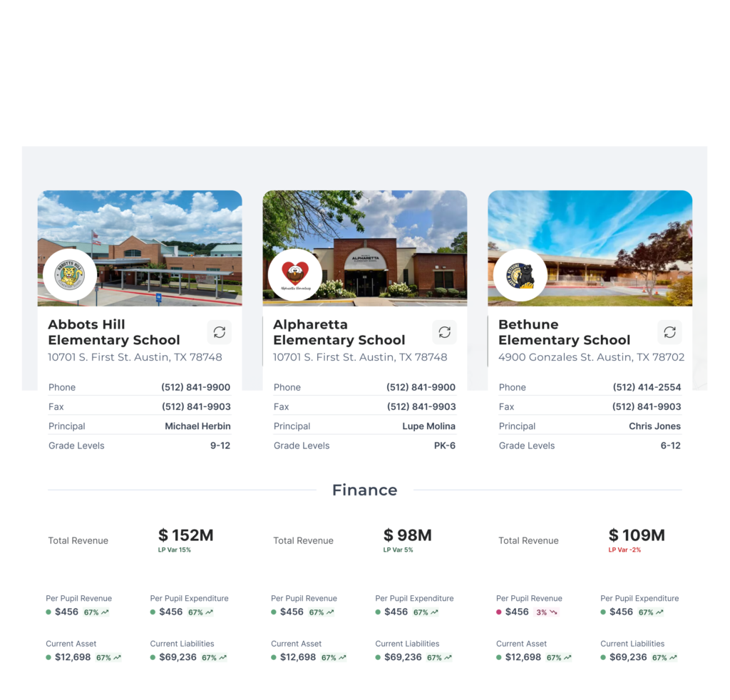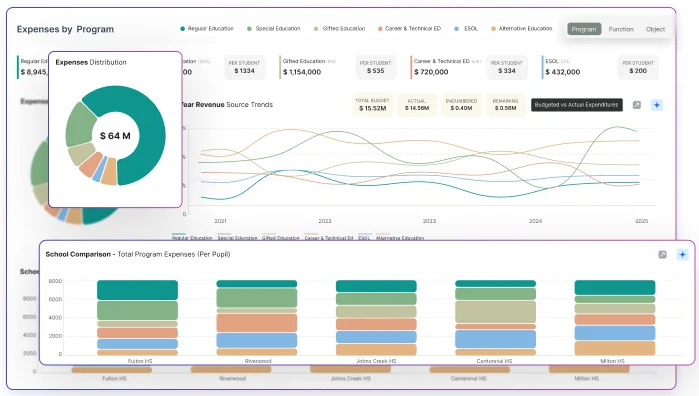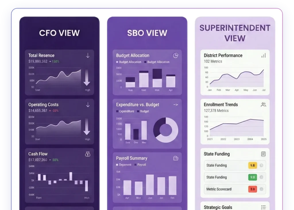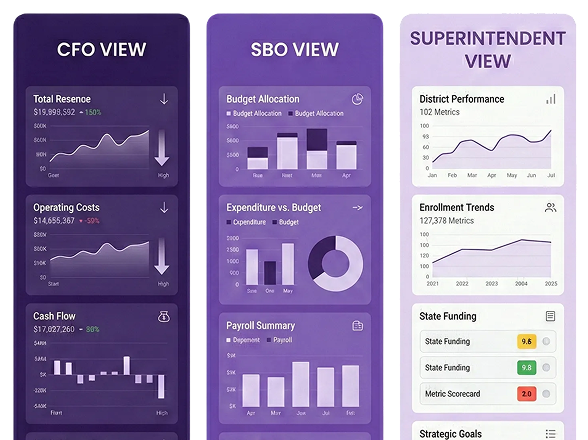 Customized dashboards for CFOs, SBOs, Superintendents, and department heads for clearer, relevant insights.