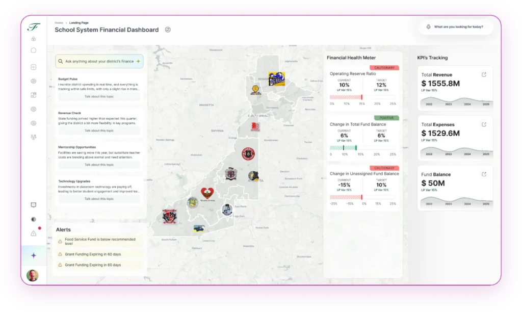 Unify your district’s financial data into one smart dashboard. Get instant insights, automate reporting, and use predictive analytics to drive stronger, faster decisions.