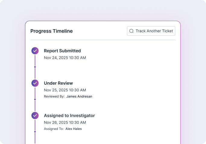 Ensure every step follows legal timelines and documentation requirements. Automated reminders, built-in forms, and progress tracking make it easy for staff to stay on top of investigations without missing compliance deadlines.