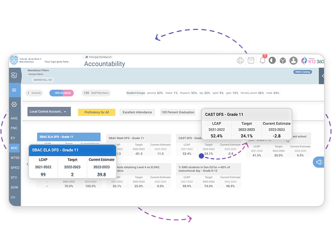 Align dashboards with district priorities, frameworks, and goals for student well-being and equity.